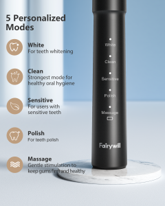 مسواک برقی Fairywill E11 Sonic جدیدترین طراحی با آخرین تکنولوژی مسواک را ارائه داده است. E11 Sonic Electric Toothbrush از مدرن ترین تکنولوژی مسواک برقی با حداکثر 40000 لرزش صوتی در دقیقه استفاده می کند. از طریق ارتعاشات صوتی تا 40000 ضربه در دقیقه انجام میدهد تا به طور موثر تا 100٪ بیشتر لکه های سطحی را نسبت به مسواک دستی از بین ببرد.