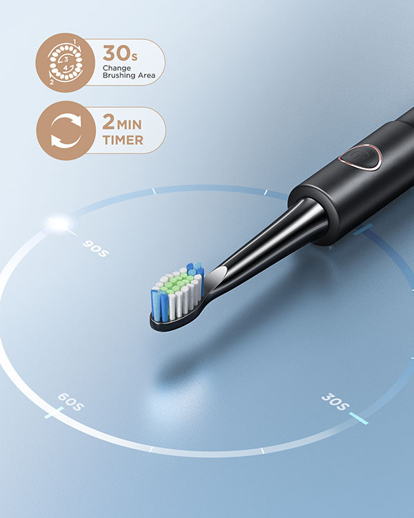 - تایمر هوشمند دو دقیقه ای برای مدیریت زمان و مسواک زدن طبق توصیه ی دندان پزشکان