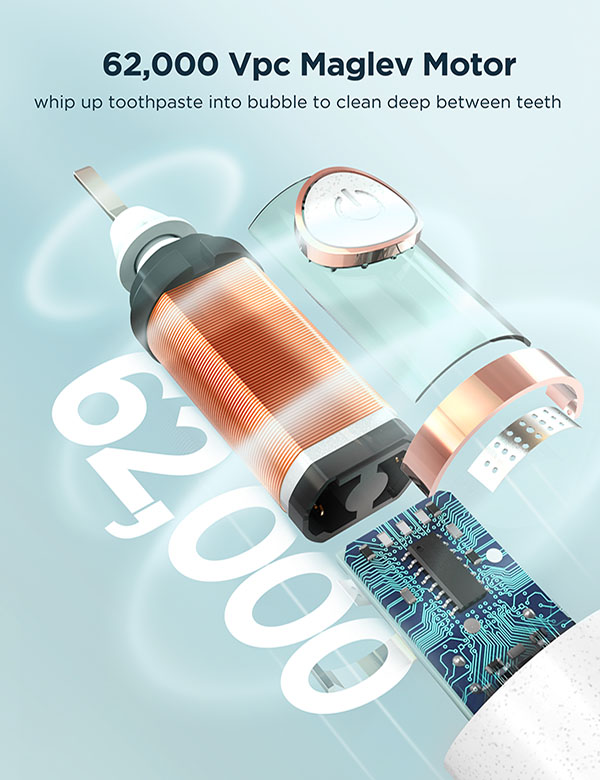 موتور Maglev نسل سوم پیشرو در صنعت 62000 حرکت برس را در هر چرخه انجام می دهد که به طور موثر لکه ها را از بین می برد و سلامت خط لثه شما را بهبود می بخشد.