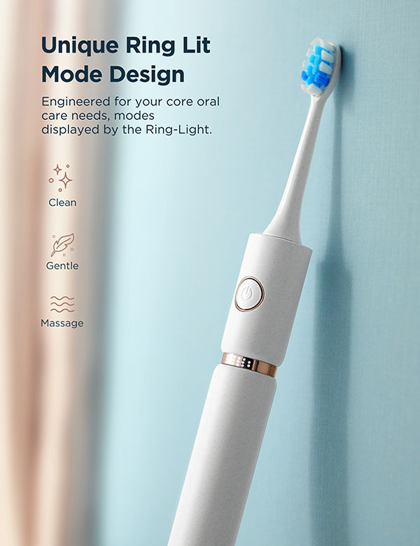 مسواک برقی Fairywill P11، ظاهری عالی و عملکردی بی‌نظیر ارائه می‌دهد. P11 با حلقه‌ای به رنگ طلایی ترکیبی از استایل جسورانه، برنده جایزه Red Dot 2020 شد. ظاهر ساده و شیک این مسواک به شما امکان می‌دهد از مسواک زدن در زندگی روزمره لذت ببرید.