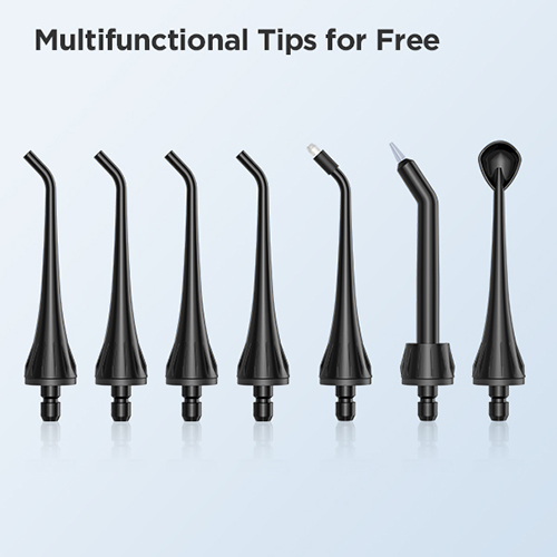 - 7 نازل در مجموع: 4 نازل استاندارد، 1 نازل ارتودنسی، 1 نازل برای ایمپلنت،1 نازل تمیز کننده زبان